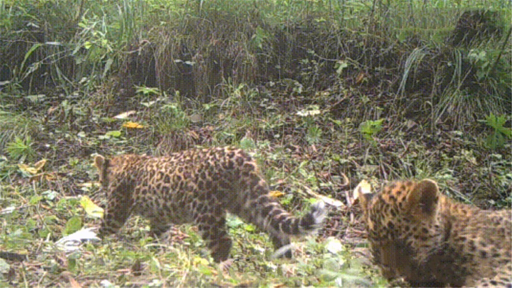 非常巧的是,母豹选择给幼崽玩闹的地方,正好在红外相机前。拍下了华北豹带娃的生动画面,为研究华北豹提供了珍贵的资料。